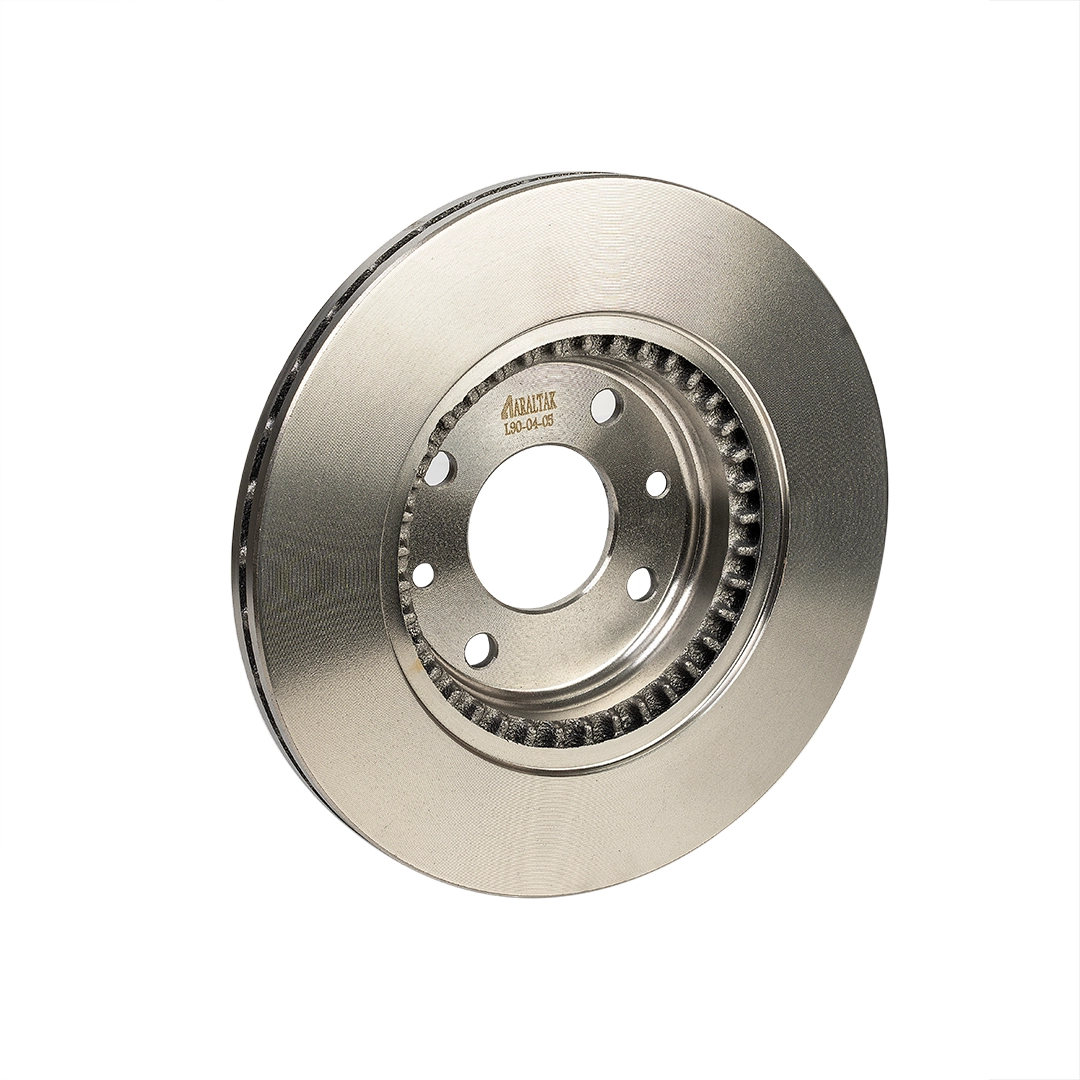 دیسک ترمز چرخ جلو ال۹۰ از نوع خنکشونده است، به این معنی که از دو صفحه به هم پیوسته با پرههای داخلی تشکیل شده که هدف آن به حداقل رساندن حرارت و جلوگیری از پدیده “محو شدن ترمز” (Brake Fade) است. دیسکهای آرال تک با تمرکز بر کیفیت ساخت و آلیاژ، این ویژگیهای فنی را تقویت کردهاند: